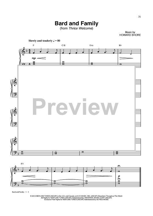 "Bard And Family (from Thrice Welocme)" Sheet Music by Howard Shore