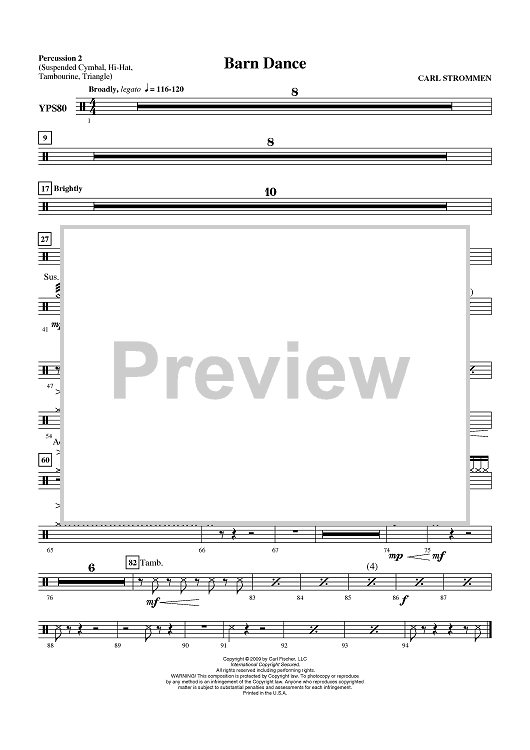 "Barn Dance - Percussion 2" Sheet Music by Carl Strommen