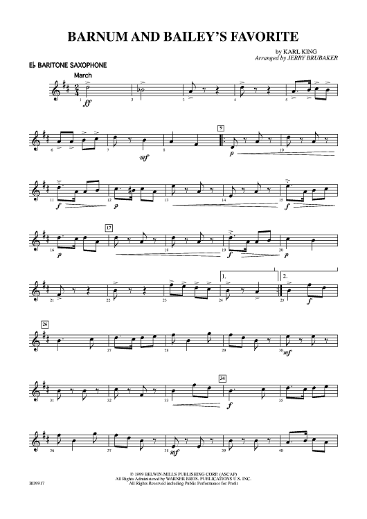 "Barnum And Bailey's Favorite - Baritone Saxophone" Sheet Music by Karl King