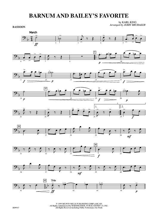 Digital Sheet Music for Barnum And Bailey's Favorite - Bassoon by Jerry Brubaker, Karl King scored for Concert Band; id:403884