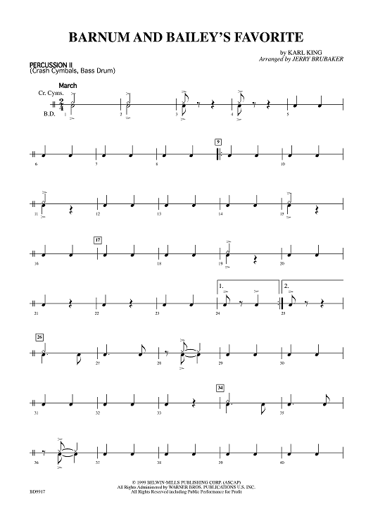 Digital Sheet Music for Barnum And Bailey's Favorite - Percussion 2 by Jerry Brubaker, Karl King scored for Concert Band; id:403891