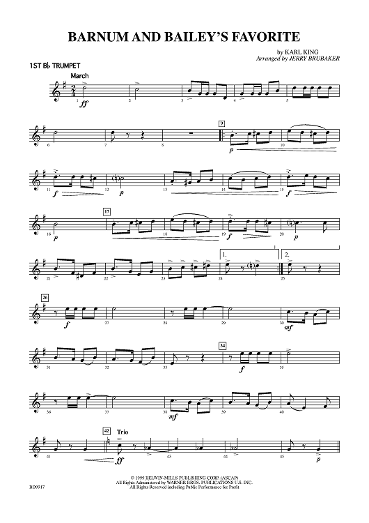 Digital Sheet Music for Barnum And Bailey's Favorite - Trumpet 1 by Jerry Brubaker, Karl King scored for Concert Band; id:403894