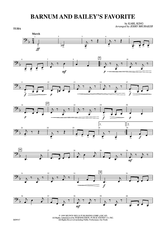 Digital Sheet Music for Barnum And Bailey's Favorite - Tuba by Jerry Brubaker, Karl King scored for Concert Band; id:403892