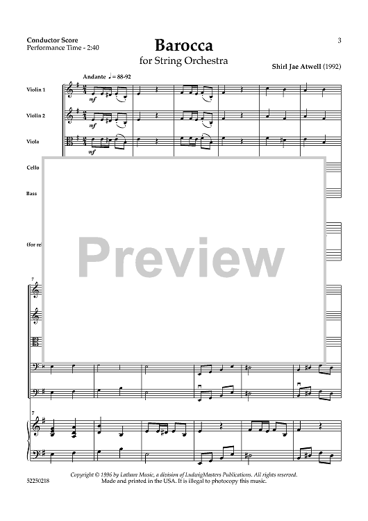 "Barocca - Score" Sheet Music by Shirl Jae Atwell