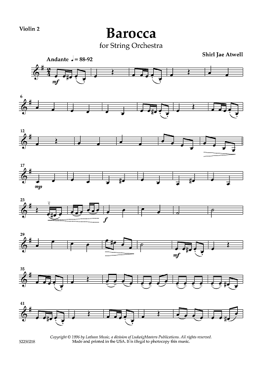 "Barocca - Violin 2" Sheet Music by Shirl Jae Atwell