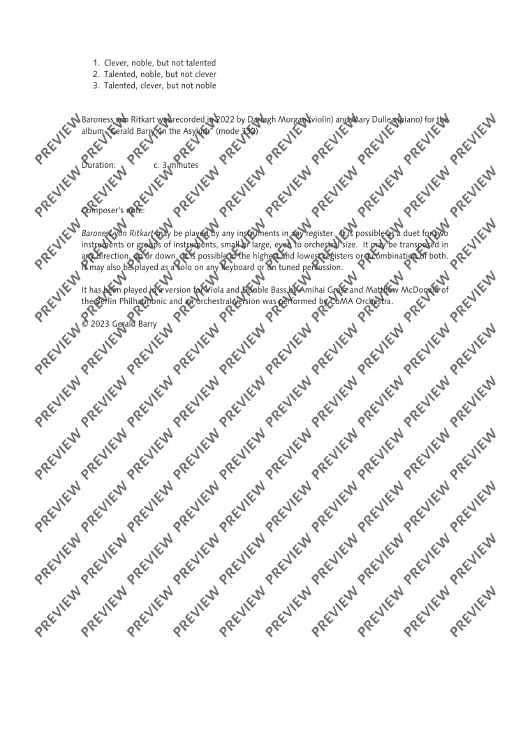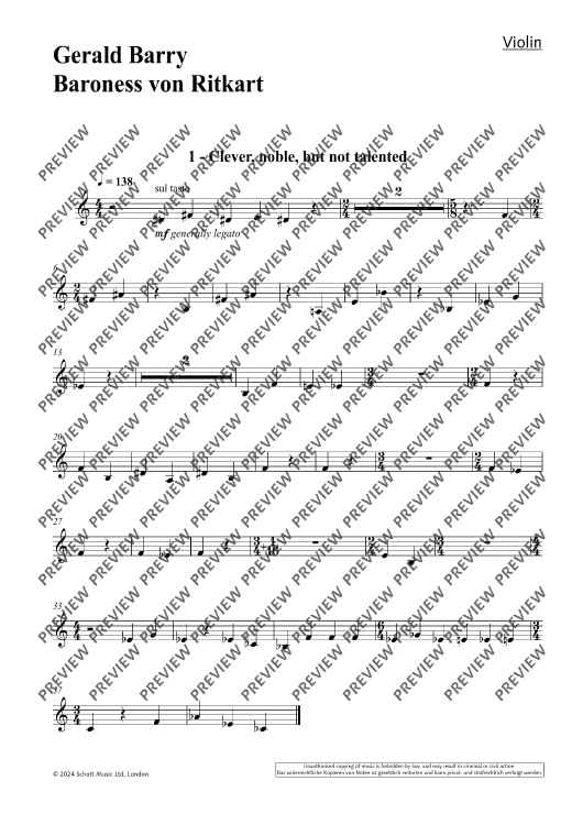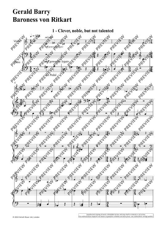 Digital Sheet Music for Baroness von Ritkart - Score and Parts by Gerald Barry scored for Violin And Piano; id:502091
