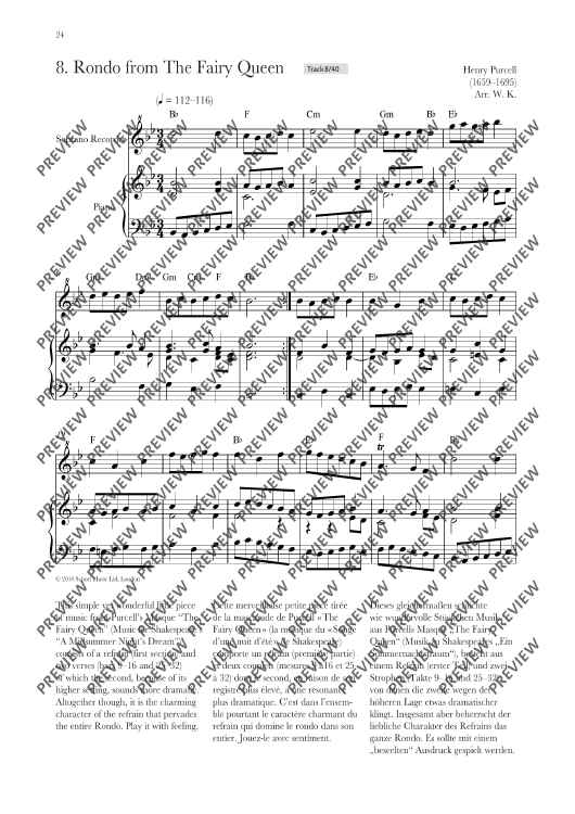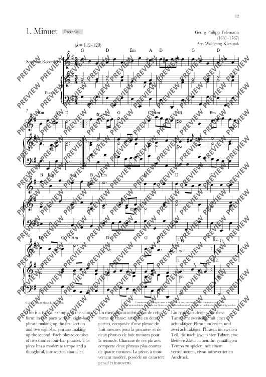 This anthology contains pieces by seventeenth- and eighteenth-century composers in a variety of different styles. The repertoire includes works by major composers such as Telemann, Purcell and Corelli as well as lesser-known composers including, amongst others, Babell, Delalande, van Eyck, Fischer, Locke and Luidhens. This collection is ideal for recorder teachers looking for additional repertoire for their teaching practice as well as developing players looking to expand their repertoire and for use in school or music centre concerts.