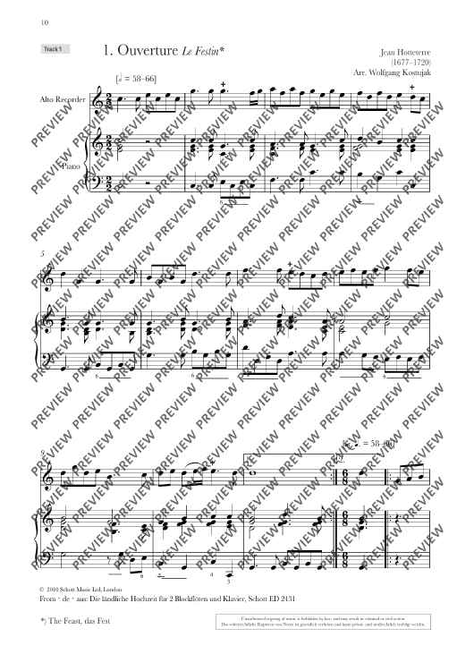 This anthology contains pieces by seventeenth and eighteenth-century composers in a variety of different styles. The repertoire includes works by major composers such as Telemann as well as lesser-known composers including, amongst others, Hotteterre, Marcello, Chédeville and Schickhardt. This collection is ideal for recorder teachers looking for additional repertoire for their teaching practice as well as developing pianists looking to expand their repertoire, and for use in school or music centre concerts.