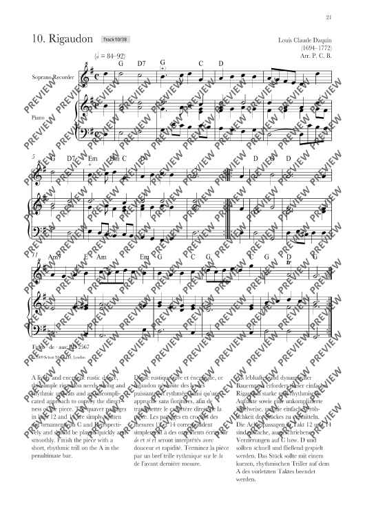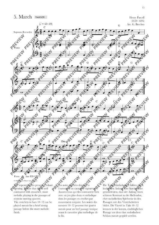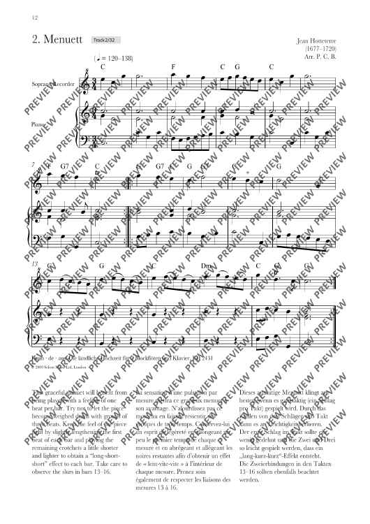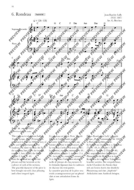 This anthology contains pieces by seventeenth- and eighteenth-century composers in a variety of different styles. The repertoire includes works by major composers such as Telemann and Purcell as well as lesser-known composers including, amongst others, Daquin, van Eyck, Hotteterre, and Lully. This collection is ideal for recorder teachers looking for additional repertoire for their teaching practice as well as for developing players looking to expand their repertoire, and for use in school or music centre concerts.