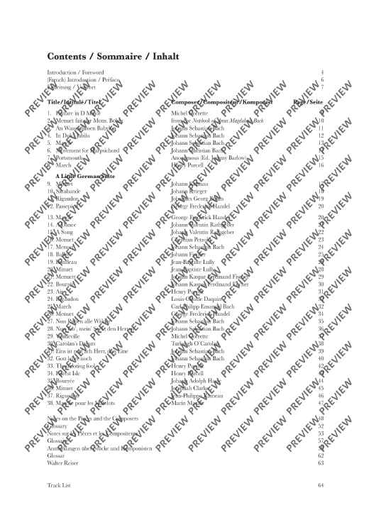 The highly regarded early music specialist and violinist, Walter Reiter, presents the first in a new series of four volumes dedicated to violin music from the Baroque period. Featuring 38 beautiful pieces scored for violin and keyboard accompaniment, this collection includes pieces by well known figures such as Bach, Handel and Purcell, as well as lesser-known and rarely available works from a range of other composers. Suitable for students of ca. 1-2 years of playing experience, this book includes composer biographies and teaching notes on each piece, together with a recording of all works performed by Walter Reiter and Robin Bigwood.