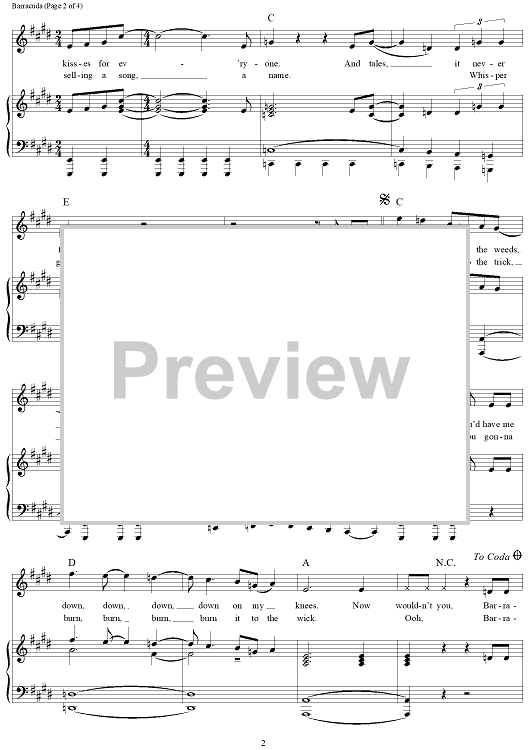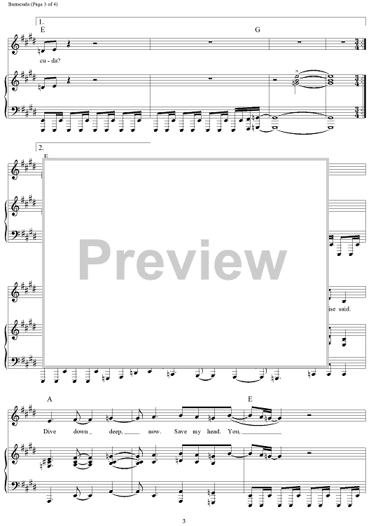 Digital Sheet Music for Barracuda by Heart, Ann Wilson, Nancy Wilson, Michael Derosier, Roger Fisher scored for Piano/Vocal/Chords; id:264784