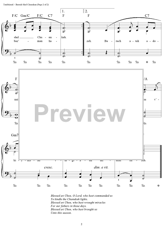 "Baruch Shel Chanukah" Sheet Music by Traditional