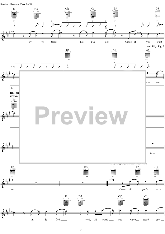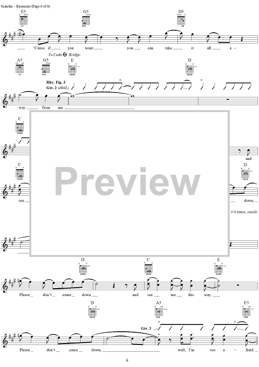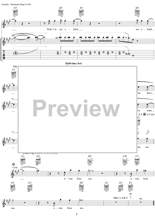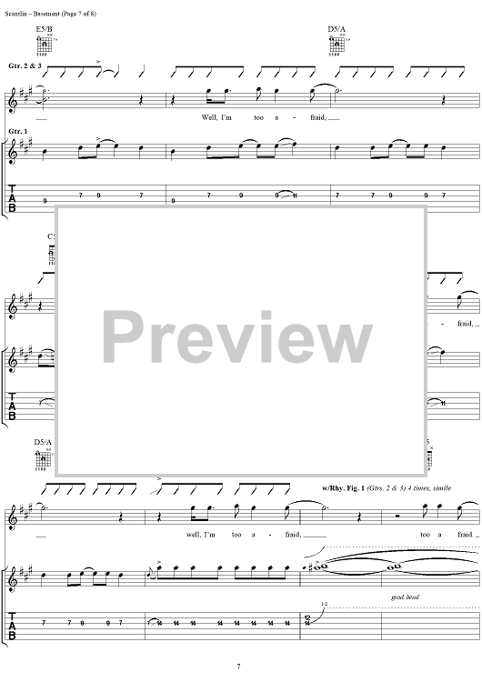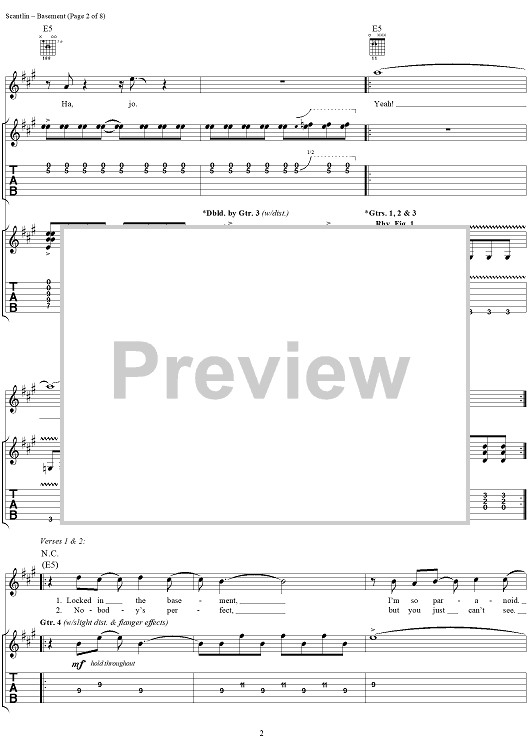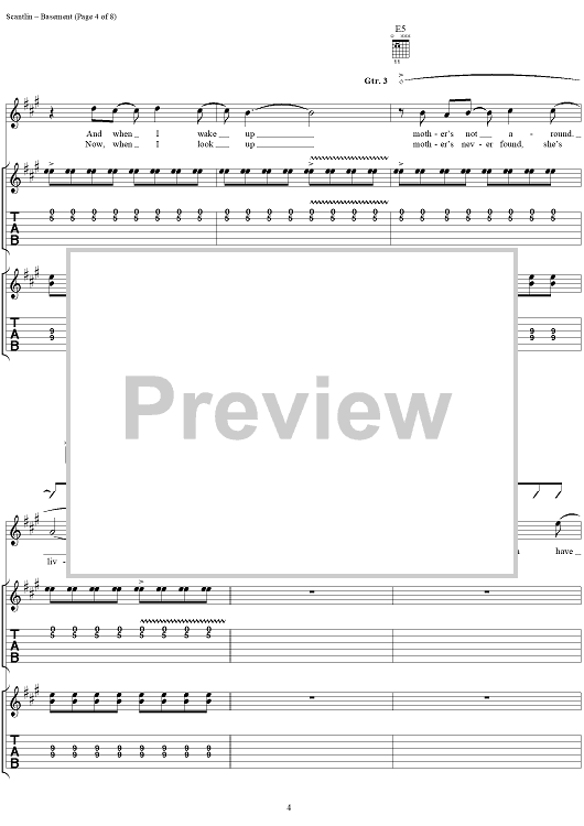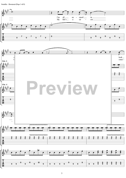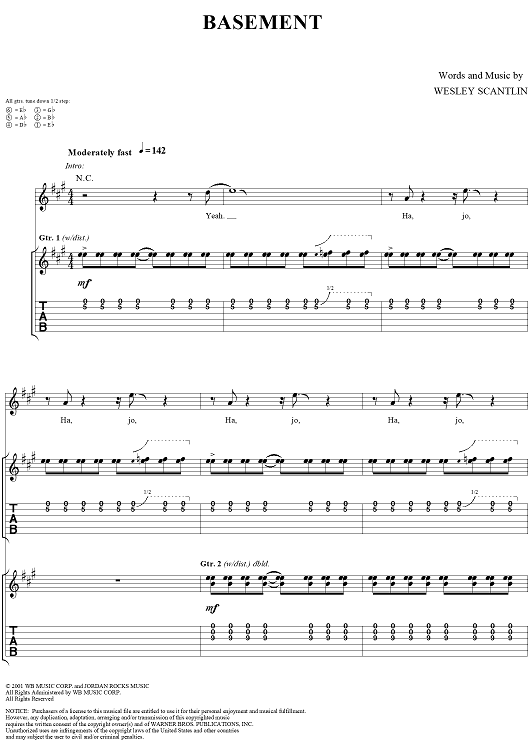 Digital Sheet Music for Basement by Puddle Of Mudd, Wesley Scantlin scored for Guitar Tab/Vocal; id:288862