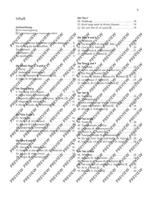 The new method for all who already know how to play the recorder and want to explore the bass recorder. With numerous solo pieces, duos and works with piano or harpsichord accompaniment, the method introduces bass recorder playing and bass clef. Quartets are available for download. Playing tips and interesting facts as well as études to promote finger dexterity complete the textbook. The method focusses on music from the 16th to 18th centuries. The piano part has been adapted to the low bass register.