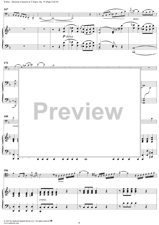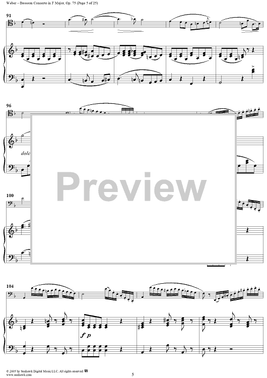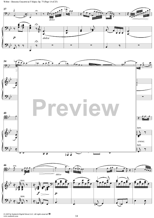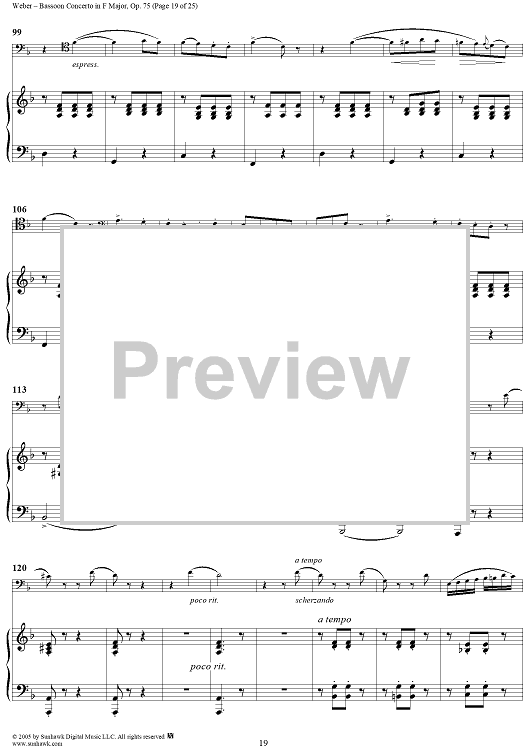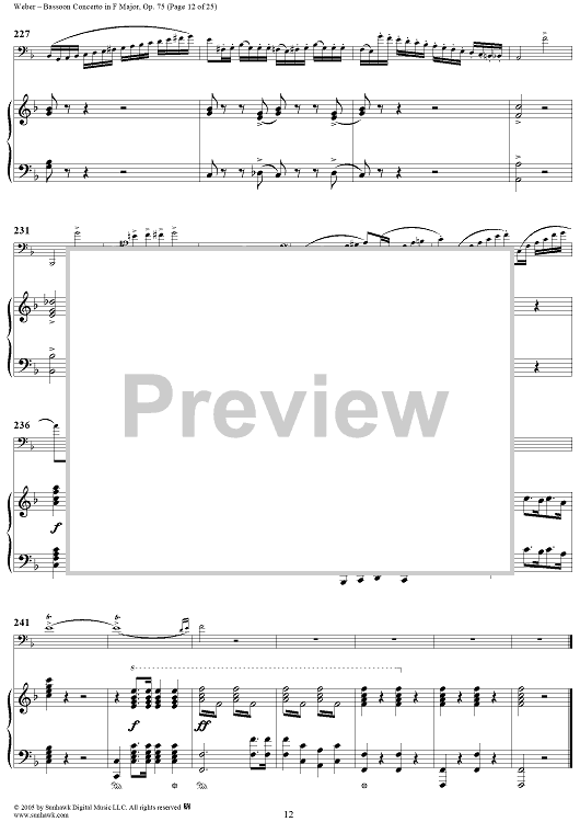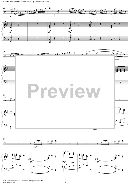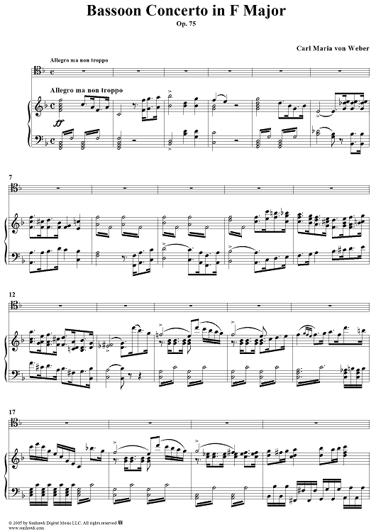 Digital Sheet Music for Bassoon Concerto in F Major - Piano Score by Carl Maria Von Weber scored for Bassoon/Piano; id:311395