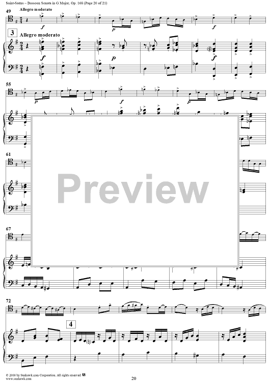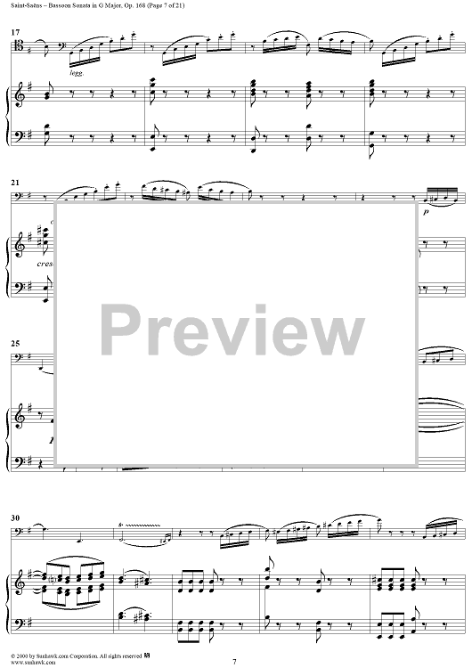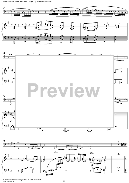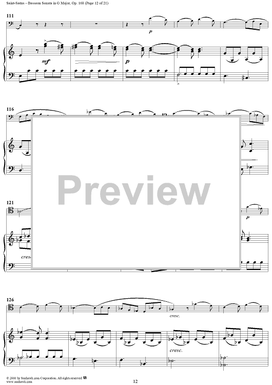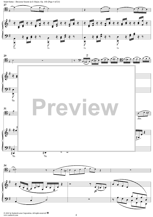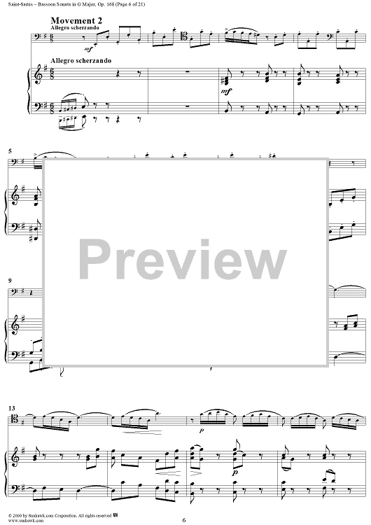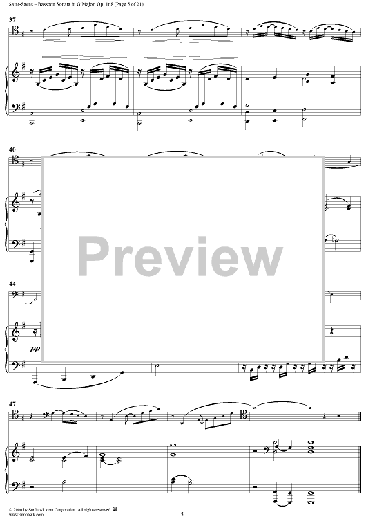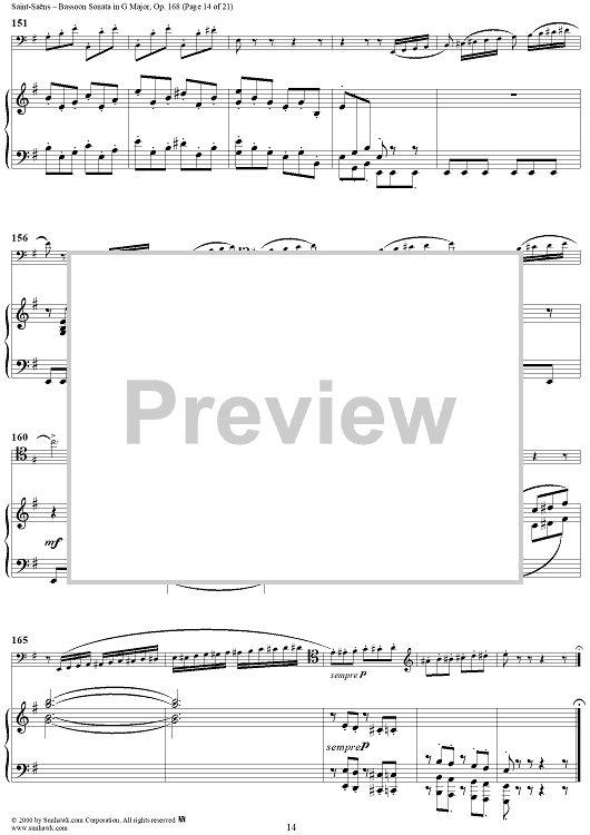 Digital Sheet Music for Bassoon Sonata, Op. 168 - Piano Score by Camille Saint-Saëns scored for Bassoon/Piano; id:176662
