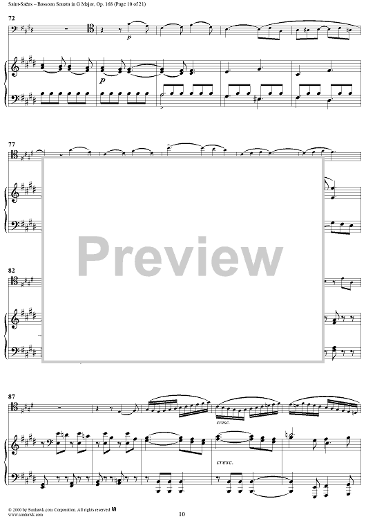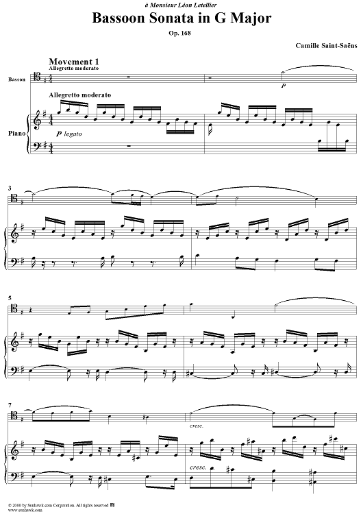"Bassoon Sonata, Op. 168 - Piano Score" Sheet Music by Camille Saint-Saëns