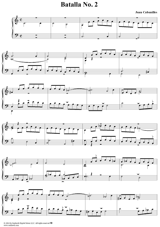 Digital Sheet Music for Batalla II by Juan Cabanilles scored for Organ Solo; id:296068