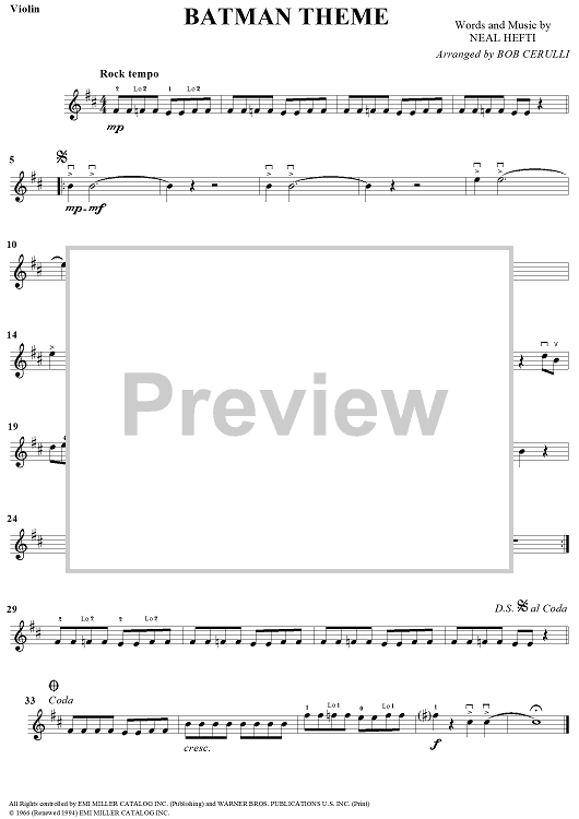 "Batman Theme - Violin" Sheet Music by Neal Hefti