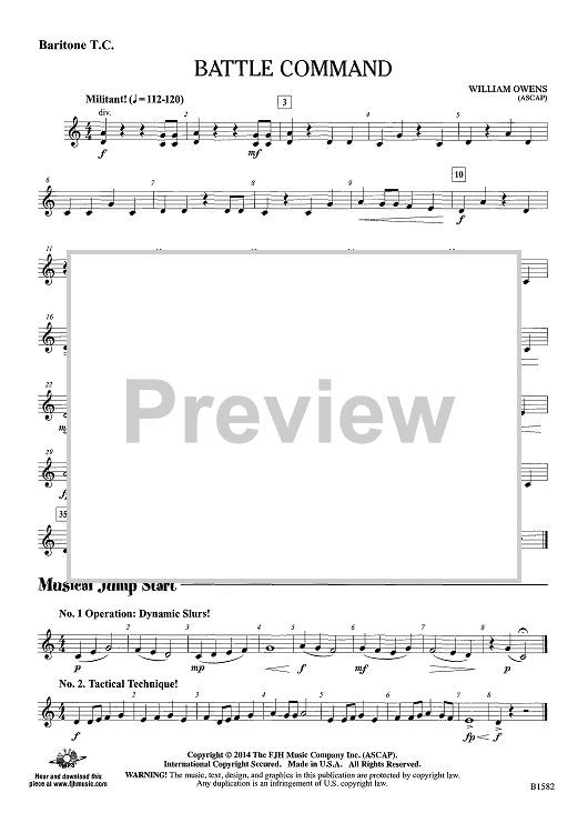 Digital Sheet Music for Battle Command - Baritone TC by William Owens scored for Concert Band; id:445759