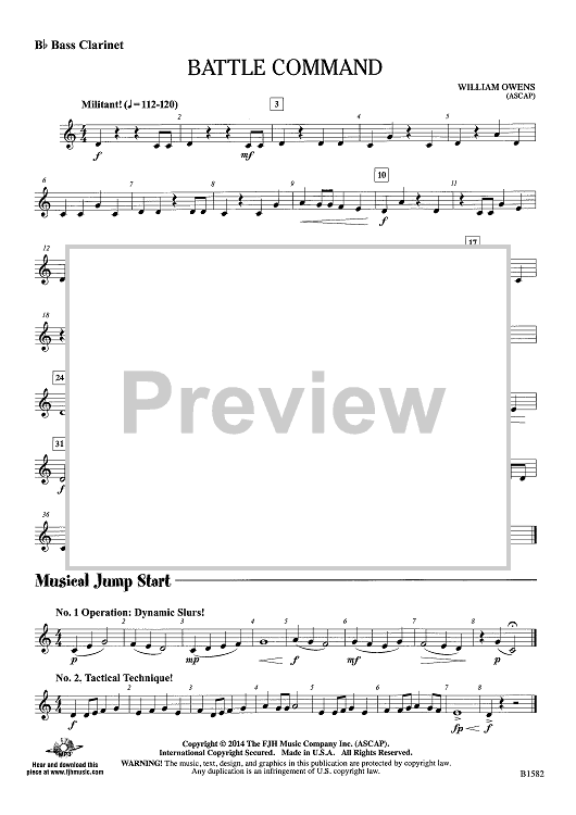 "Battle Command - Bb Bass Clarinet" Sheet Music by William Owens