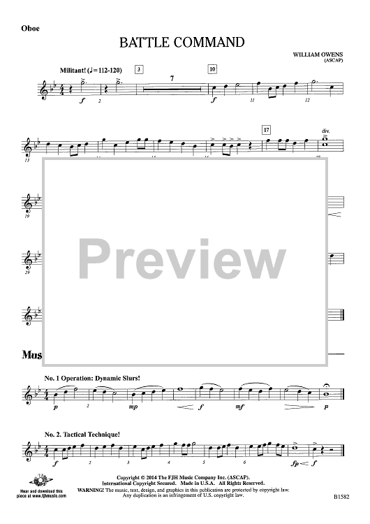 Digital Sheet Music for Battle Command - Oboe by William Owens scored for Concert Band; id:445748