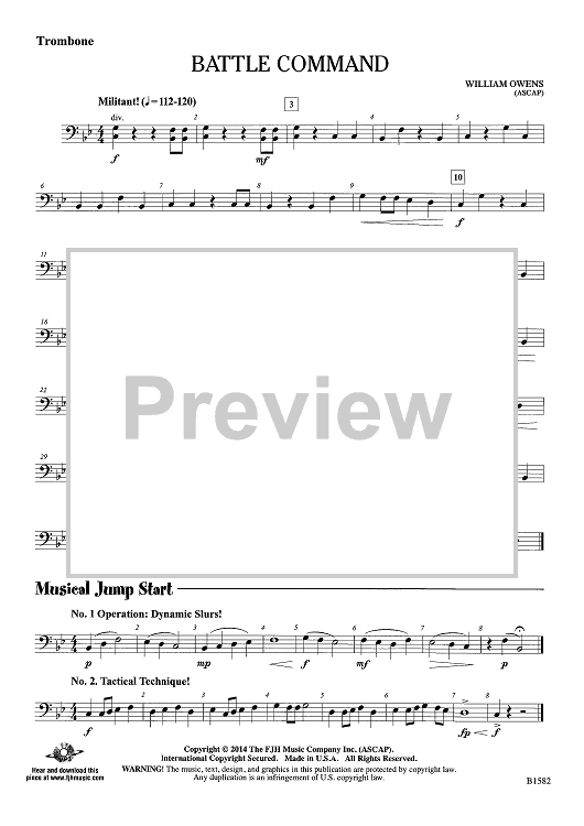 Digital Sheet Music for Battle Command - Trombone by William Owens scored for Concert Band; id:445757