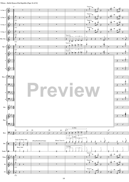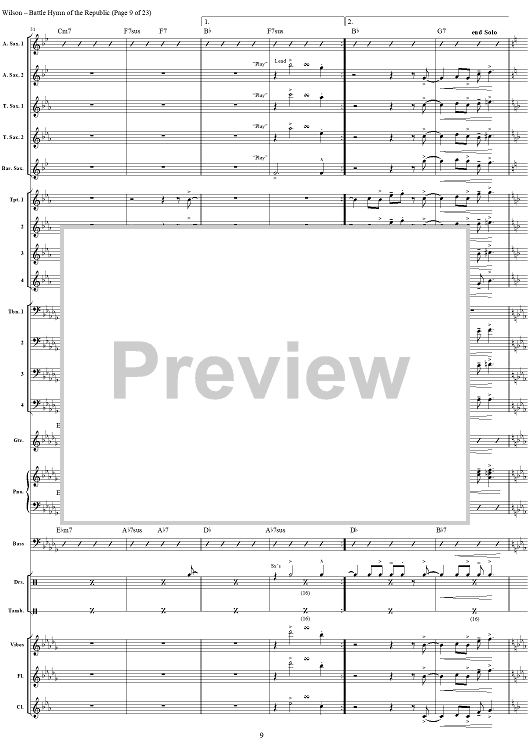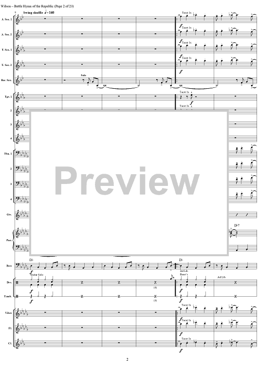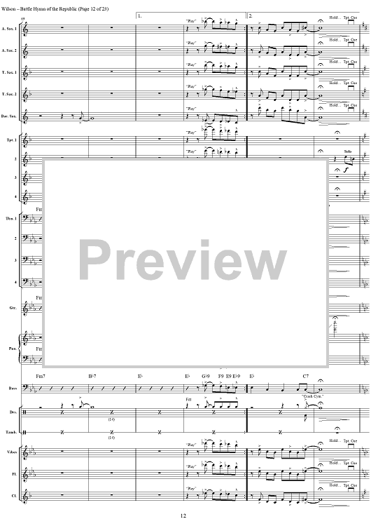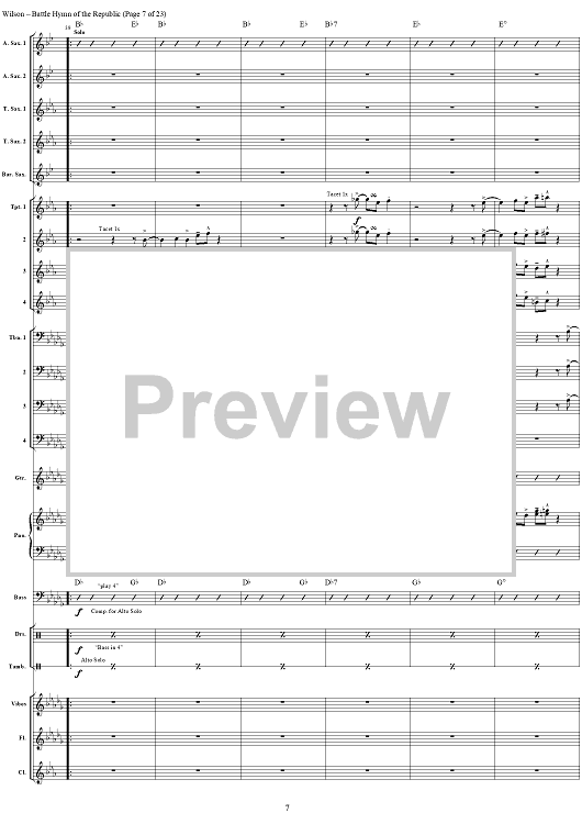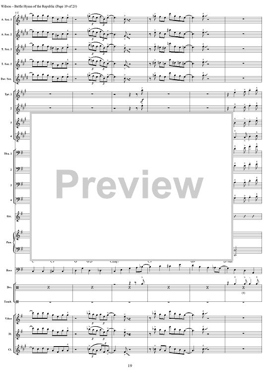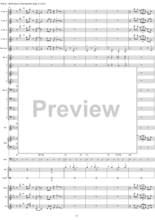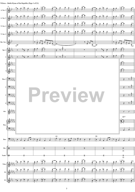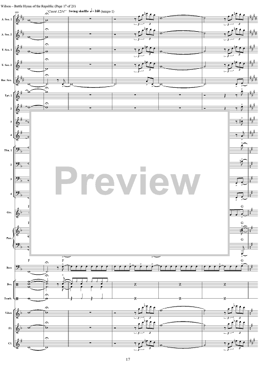 Digital Sheet Music for Battle Hymn of the Republic - Conductor's Score by , Ed Wilson scored for Jazz Ensemble; id:311035