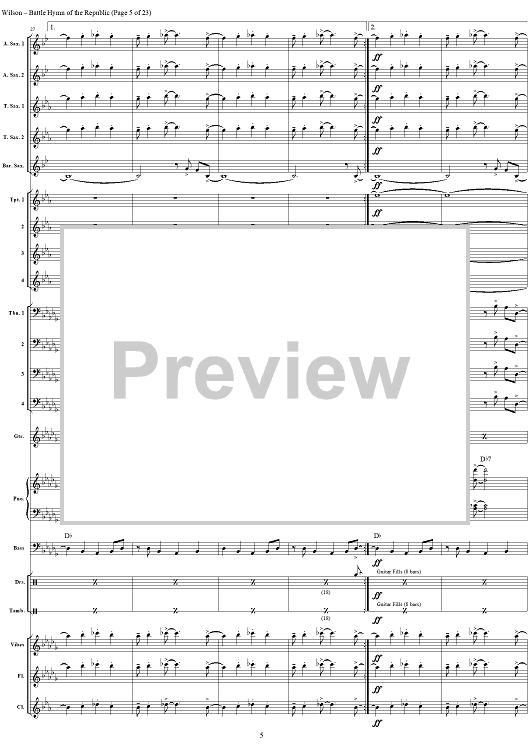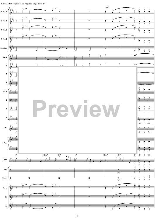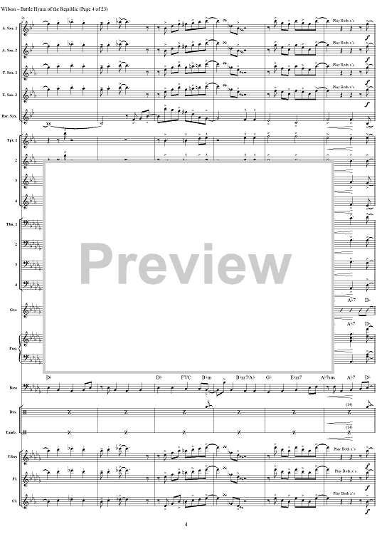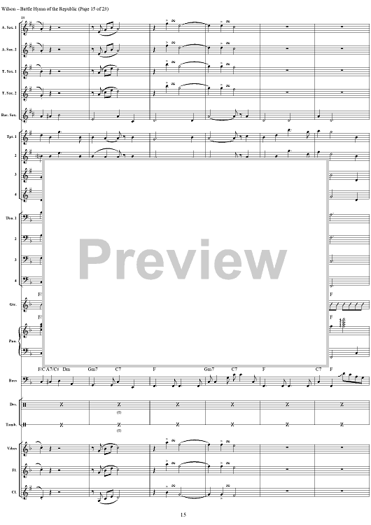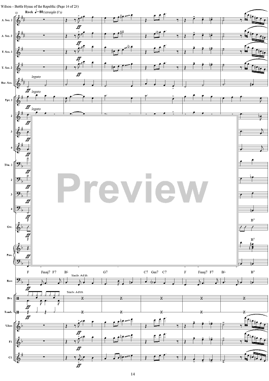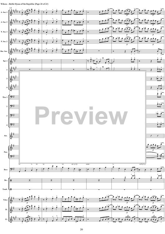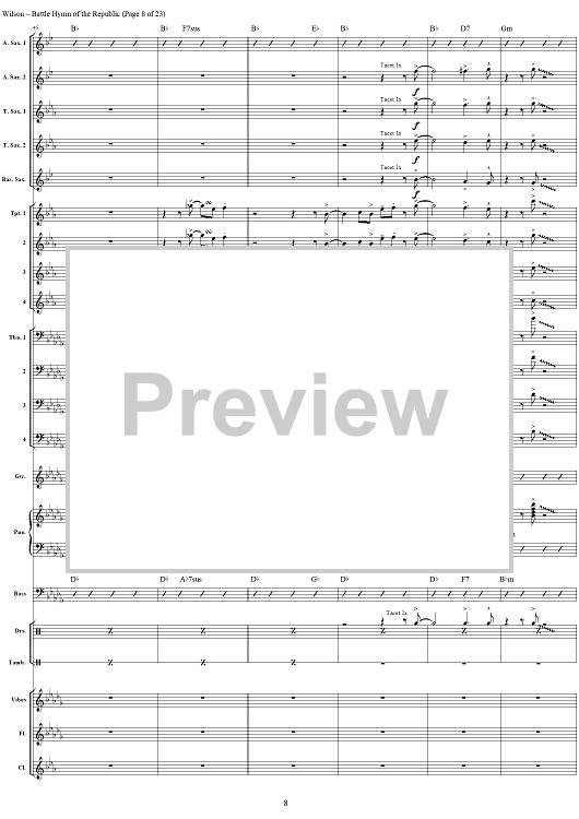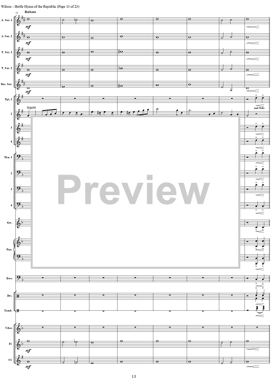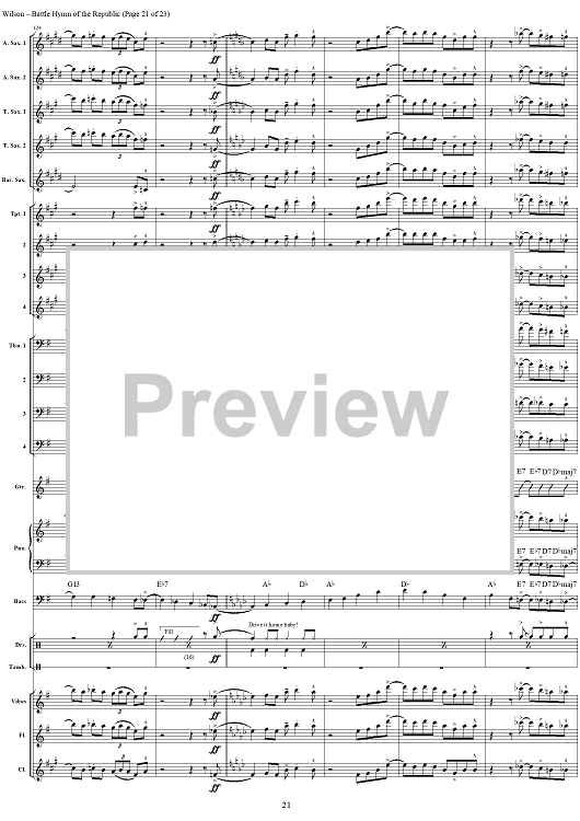 Digital Sheet Music for Battle Hymn of the Republic - Conductor's Score by , Ed Wilson scored for Jazz Ensemble; id:311035