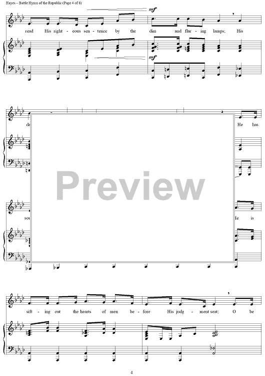 Digital Sheet Music for Battle Hymn of the Republic by Mark Hayes, Traditional American Melody scored for Piano/Vocal; id:460927
