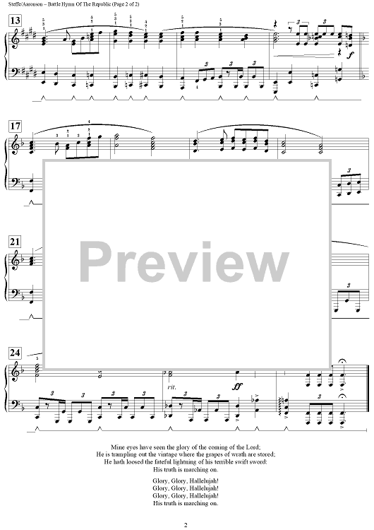 "Battle Hymn Of The Republic" Sheet Music by William Steffe