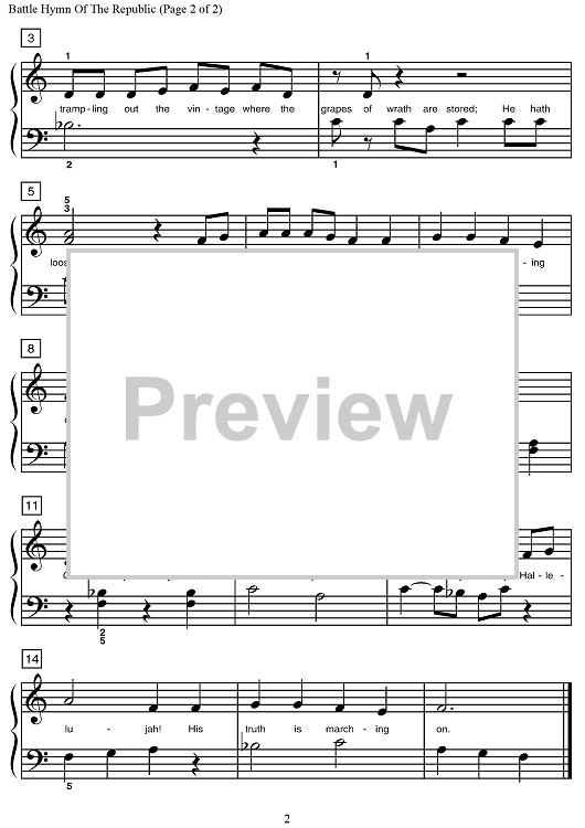 Digital Sheet Music for Battle Hymn of the Republic by William Steffe, Julia Ward Howe, Dennis Alexander scored for Piano; id:503945