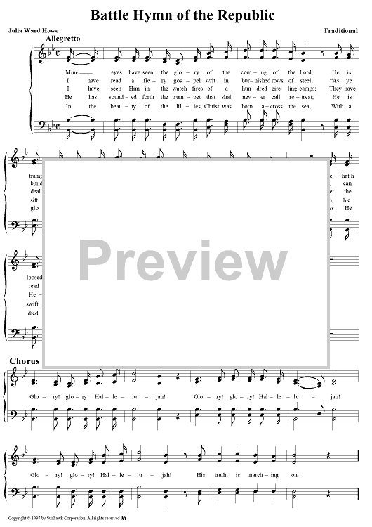 Digital Sheet Music for Battle Hymn of the Republic by William Steffe, Julia Ward Howe scored for Four-part Mixed Chorus; id:95425