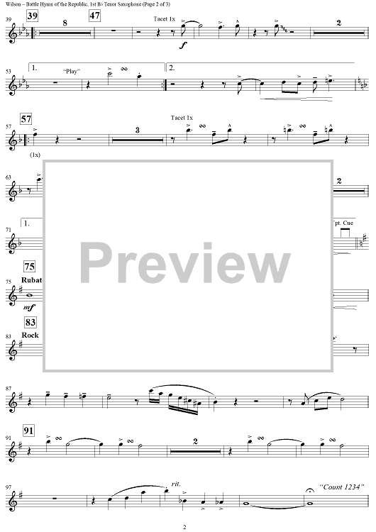 "Battle Hymn of the Republic - Tenor Saxophone 1" Sheet Music by