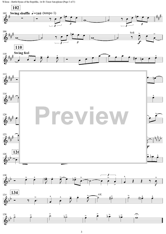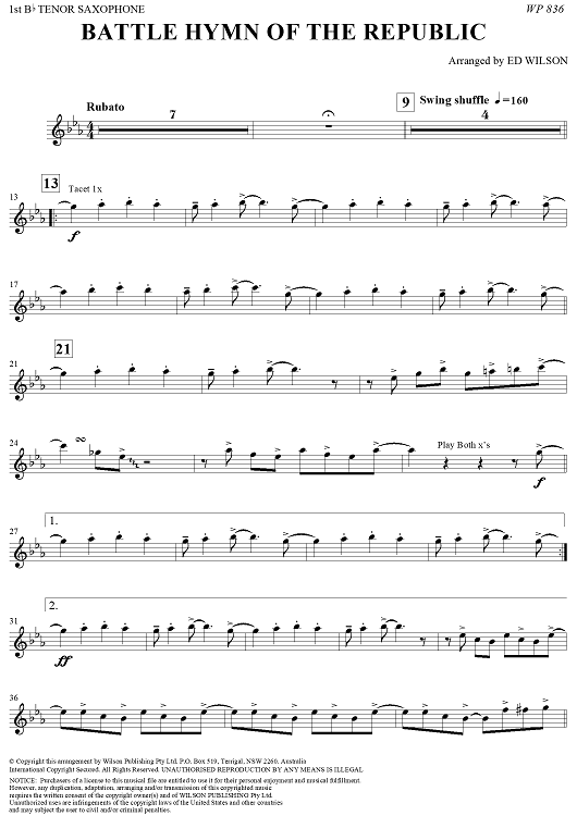 Digital Sheet Music for Battle Hymn of the Republic - Tenor Saxophone 1 by Ed Wilson scored for Jazz Ensemble; id:311038