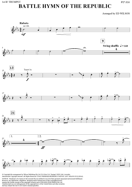 Digital Sheet Music for Battle Hymn of the Republic - Trumpet 1 by Ed Wilson scored for Jazz Ensemble; id:311041