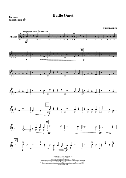 "Battle Quest - Baritone Sax" Sheet Music by Mike Forbes