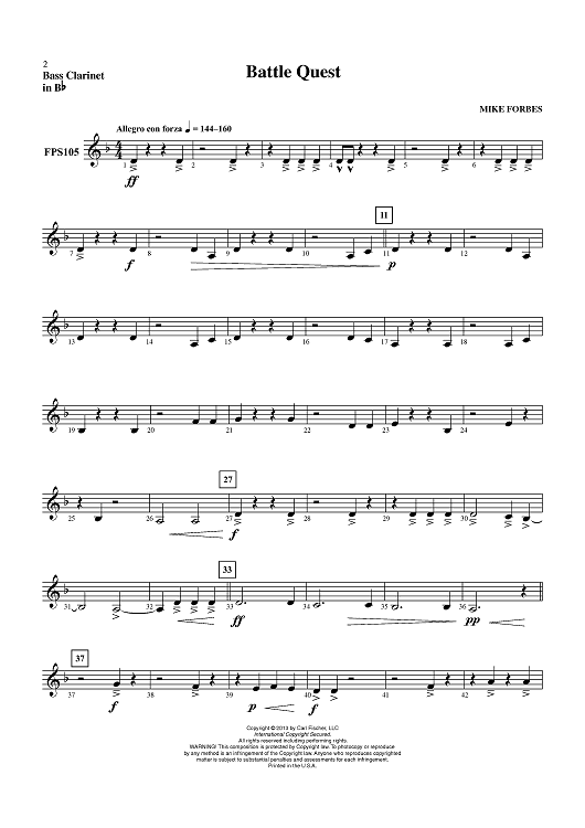 Digital Sheet Music for Battle Quest - Bass Clarinet in Bb by Mike Forbes scored for Concert Band; id:435850