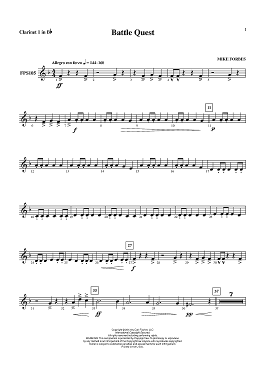 "Battle Quest - Clarinet 1 in Bb" Sheet Music by Mike Forbes