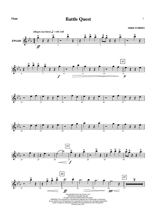 "Battle Quest - Flute" Sheet Music by Mike Forbes