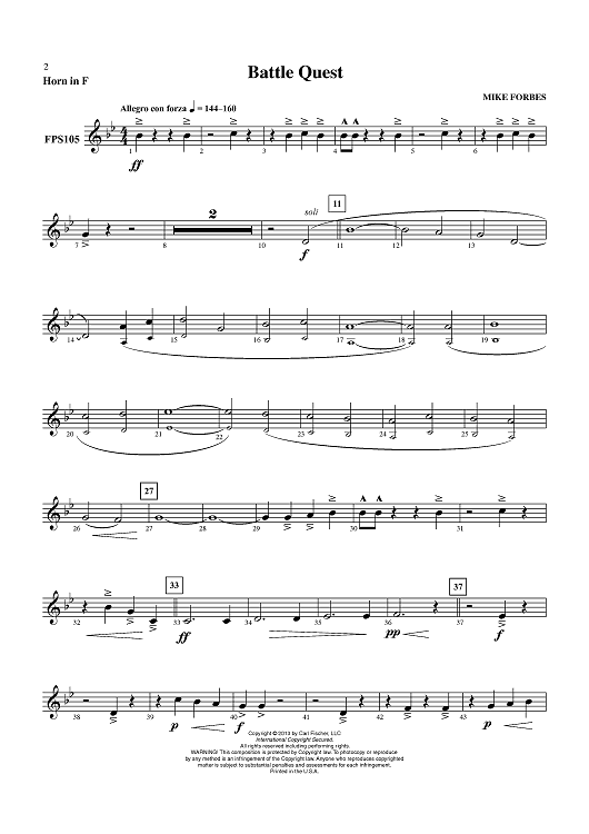 "Battle Quest - Horn in F" Sheet Music by Mike Forbes