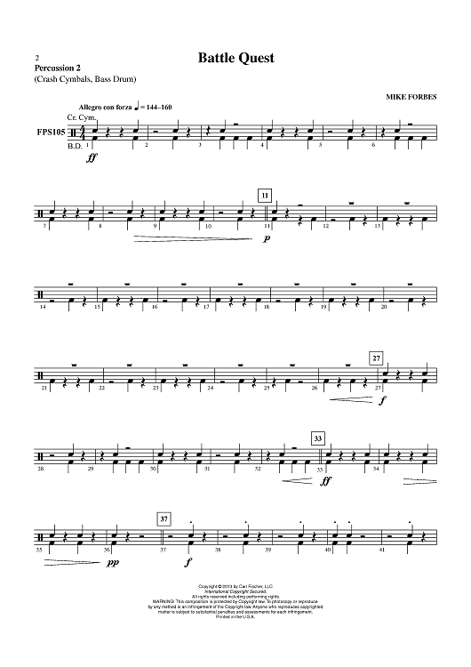 Digital Sheet Music for Battle Quest - Percussion 2 by Mike Forbes scored for Concert Band; id:435863