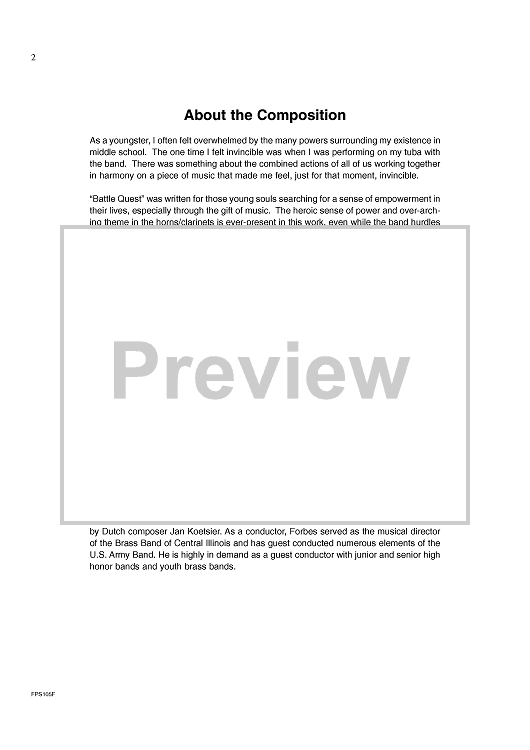 Digital Sheet Music for Battle Quest - Score by Mike Forbes scored for Concert Band; id:435845