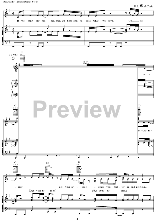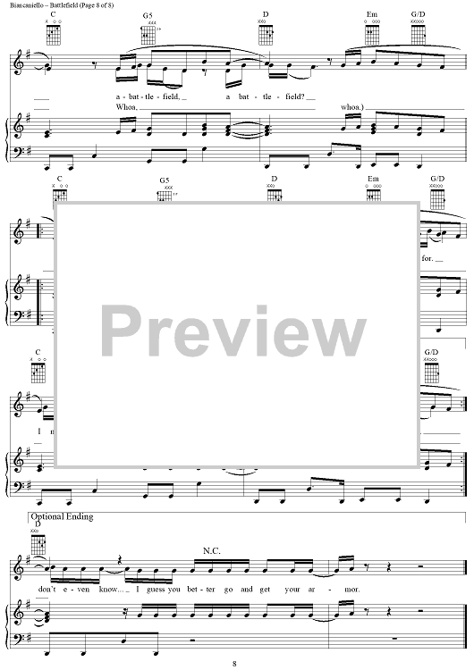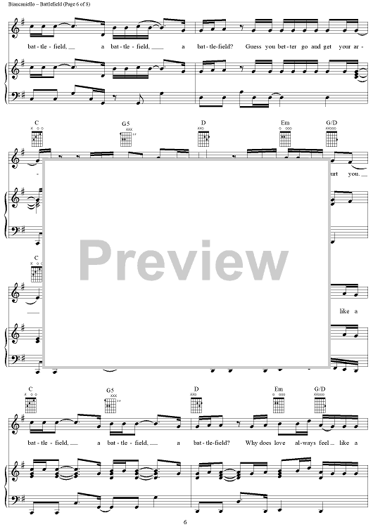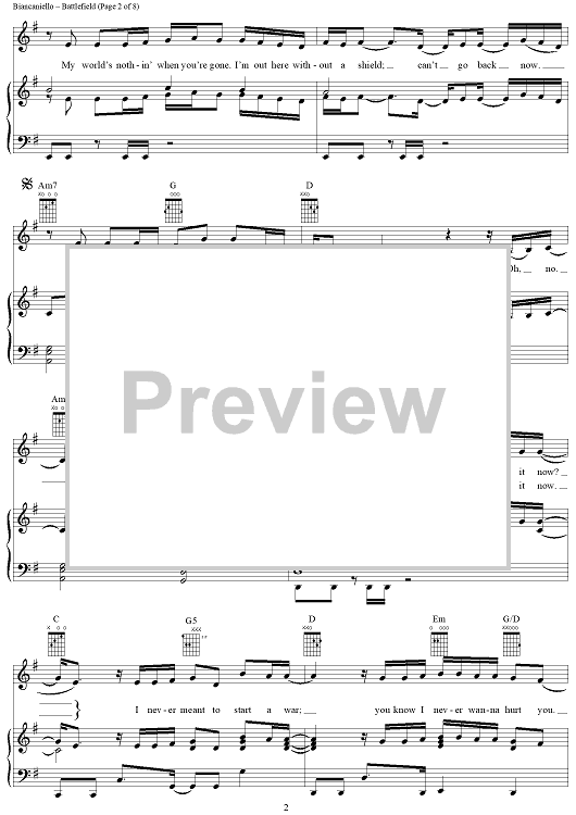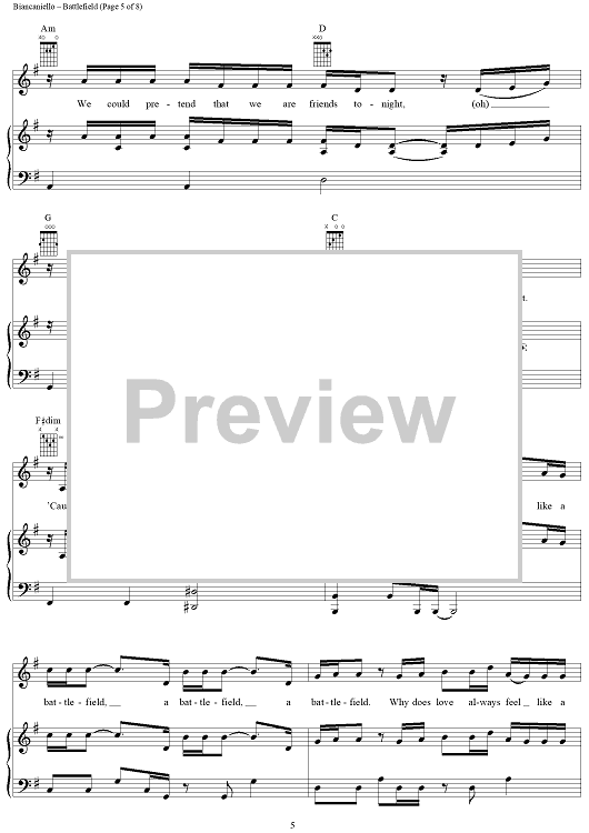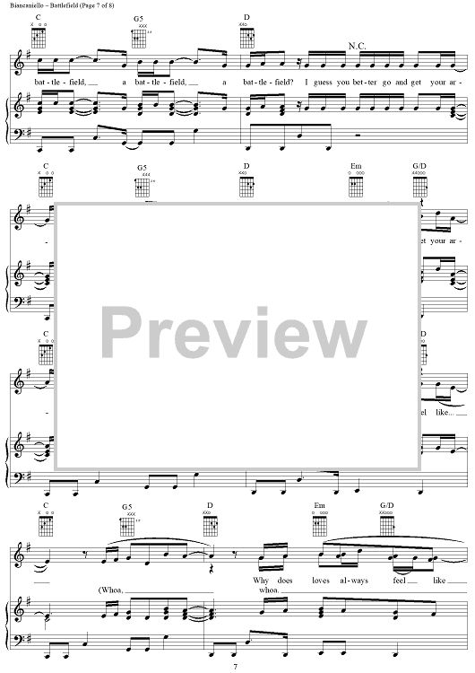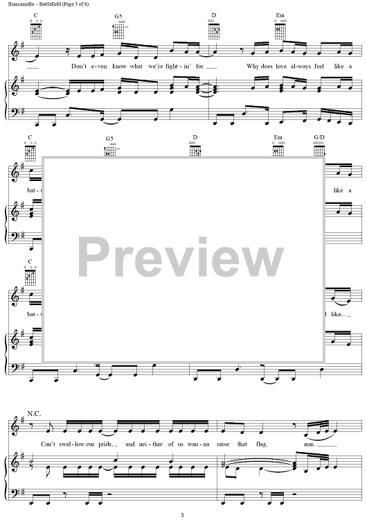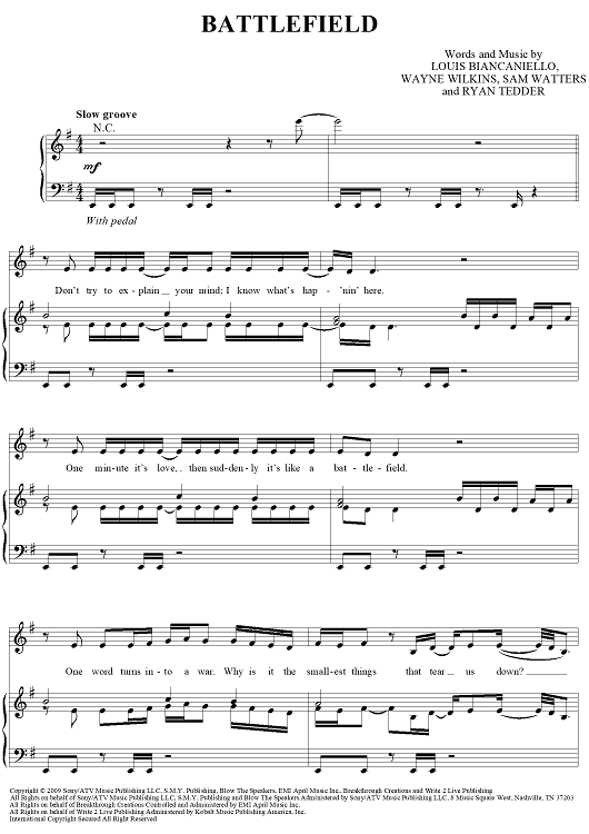Digital Sheet Music for Battlefield by Sam Watters, Jordin Sparks scored for Piano/Vocal/Chords; id:406655