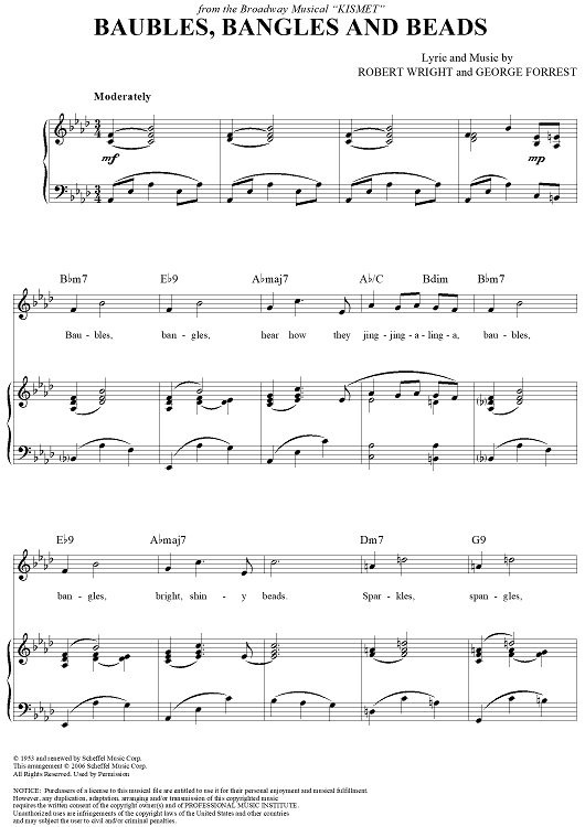 Digital Sheet Music for Baubles, Bangles and Beads by Frank Sinatra, George Forrest, Robert Wright, Kirby Stone Four scored for Piano/Vocal/Chords; id:315127
