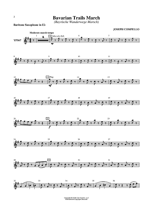 Digital Sheet Music for Bavarian Trails March - Baritone Sax by Joseph Compello scored for Concert Band; id:409499