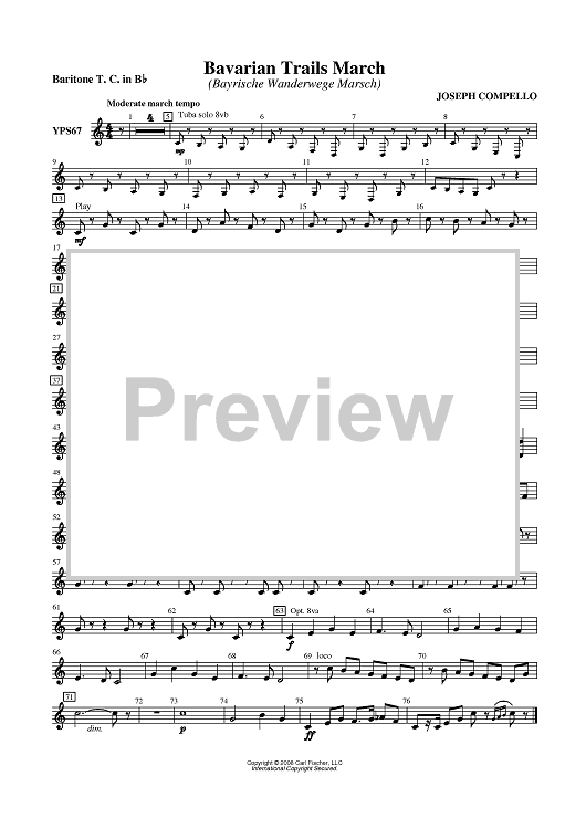 Digital Sheet Music for Bavarian Trails March - Baritone TC by Joseph Compello scored for Concert Band; id:409504