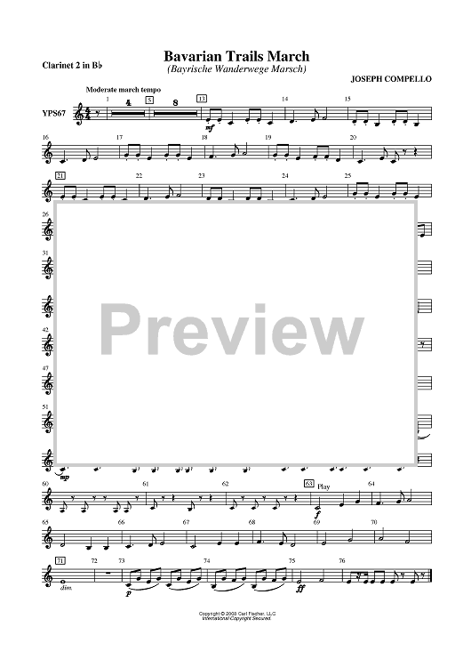 Digital Sheet Music for Bavarian Trails March - Clarinet 2 in B-flat by Joseph Compello scored for Concert Band; id:409494