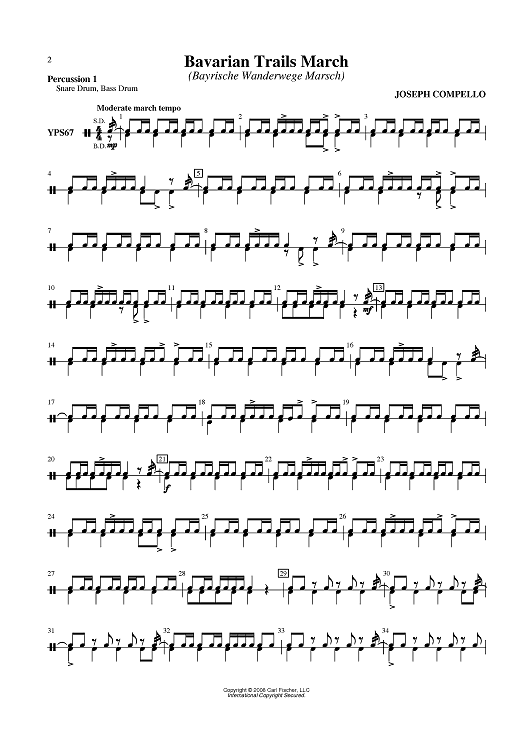 "Bavarian Trails March - Percussion 1" Sheet Music by Joseph Compello