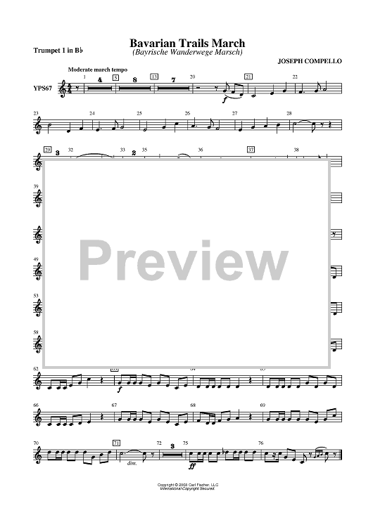 Digital Sheet Music for Bavarian Trails March - Trumpet 1 in B-flat by Joseph Compello scored for Concert Band; id:409500